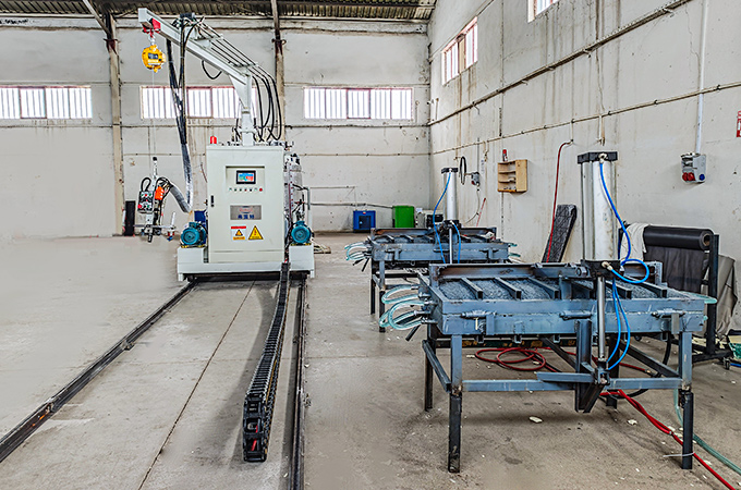 轨道两旁可密集而有序地布局多个发泡工位与模具,实现了车间平面空间的极致利用。这种布局使得模具预热、浇注、熟化、脱模等工序能够像流水线一样紧密衔接。设备移动浇注的过程,自然串联起各个工位,将离散的作业点整合为一条顺畅的隐形流水线,从而减少了工序间的滞留与搬运,提升了整体生产效率与协同性。