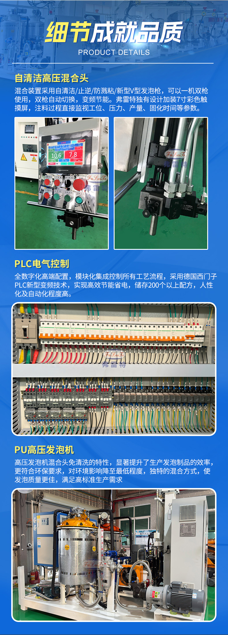 我们弗雷特的大流量发泡机,响应快、启动更快。核心就两点:动力足、流量大!动力超过75千瓦,每秒流量超过2.5公斤,混合吐出量稳稳超过3公斤每秒。这意味着什么?——注料,只需要几秒钟!