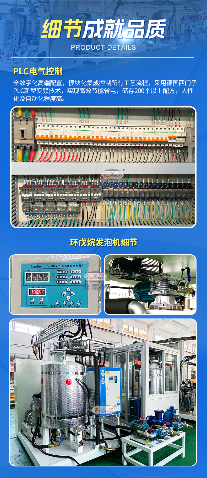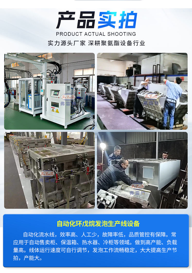 弗雷特环戊烷发泡机具有西门子PLC+双变频多功能安全装置,38个智能自检保护点,独立防静电房,烷气浓度等级自动识别系统,自动2-3级抽风系统,西门子防爆电机,独立导地装置,枪头引线静电导出装置等。