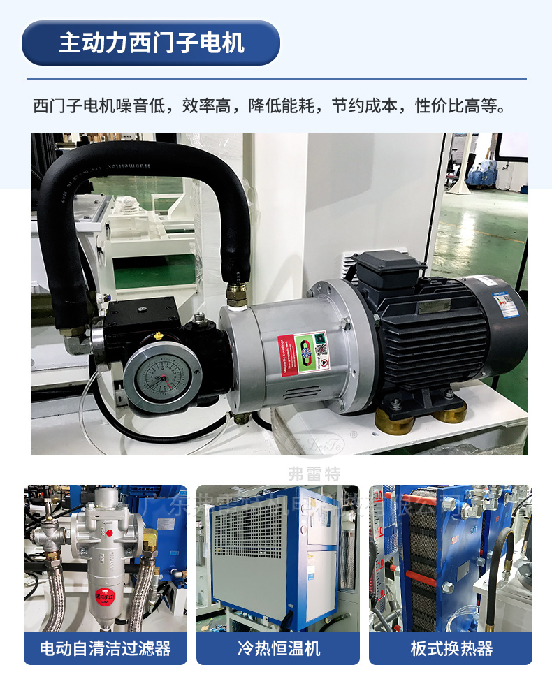 1、操作方便,生产效率提高50%: 提供人机界面,显示各种压力、温度、设定注入时间、故障提示等一系列设定参数,人机合一,方便可靠,提高生产效率;