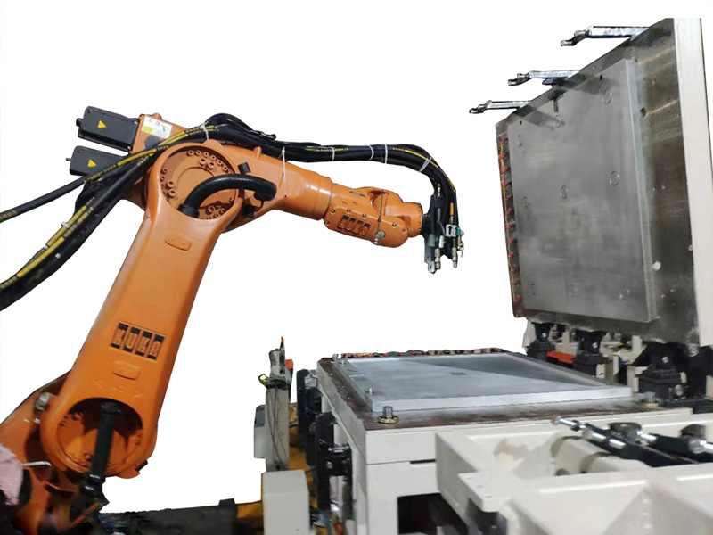 4. 库卡机器人:德国库卡机器人的应用保障了每次浇筑的路线一致,从而是材料的密度均匀性有很提高,机器人寿命长,运行稳定。工序衔接合理,息率高速度快是本生产线的最大特点。